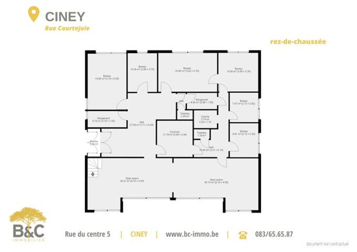OPTION !!!! A découvrir à deux pas du centre-ville de Ciney. D'une superficie de 145, ce bien pourra très bien convenir pour l'exploitation d'un centre médical, bureaux comptable - avocats ou toutes autres professions libérales. Vous profiterez d'un grand open space ainsi que de bureaux privatifs. Certains bureaux peuvent faire l'objet d'agrandissement. Le bien est également cablé dans sa totalité en réseau informatique. Vous disposerez également d'une grande cave accessible directement depuis les bureaux d'une surface de 26m2 avec garage sur l'arrière de la copropriété. Système de chauffage indépendant (accumulateur et pompe à chaleur). Les bureaux sont accessibles par le côté latéral avec une entrée entièrement indépendante. Possibilité d'agrandir la surface de bureaux d'une superficie de 110m2 avec cave et second garage !
