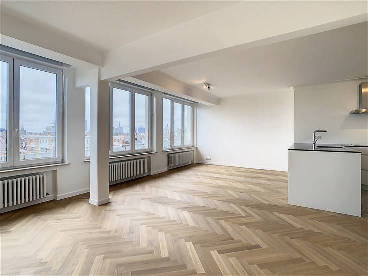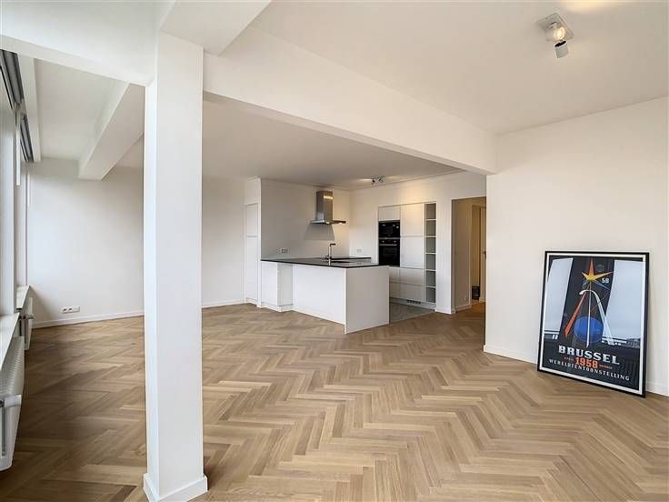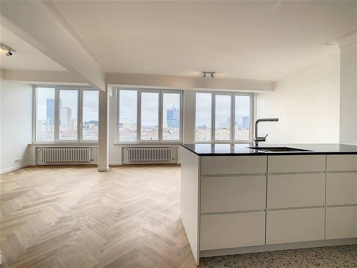 Dailly, met uitzicht op het plein Armand Steurs, lichte appartement van ±100 m² volledig gerenoveerd in 2022, gelegen op de 7e verdieping van een goed onderhouden gebouw. Het bestaat uit een inkomhal, een lichte woonkamer van ±32 m² met een nieuwe open keuken volledig uitgerust (oven, kookplaten, afzuigkap, koelkast, diepvriezer, vaatwasser), een nachthal van ±4 m², 2 slaapkamers van ±16 en 8 m², waarvan één met opbergkasten die uitgeeft op het terras van ±13 m², een douchekamer (douche, dubbele wastafels, toilet en wasruimte) en een kelder. Overal parketvloeren, nieuwe dubbele beglazing, lift. Kosten: 200€/maand (voorziening: gemeenschappelijk, verwarming, warm water, lift). De metingen worden ter indicatie gegeven. De positieve punten: locatie +++, kwaliteit renovatie, uitzicht, helderheid. Een garagebox te huur voor 150€/maand (optioneel). Onmiddellijk beschikbaar! Info en bezoeken: 0478/07.34.26