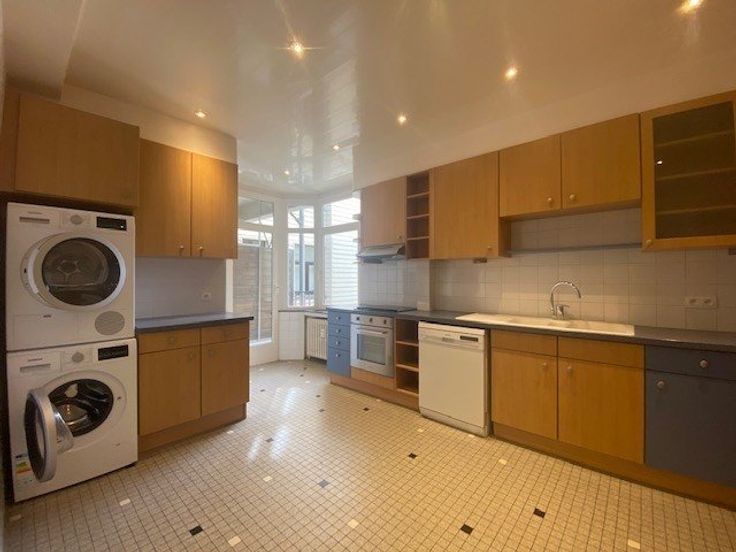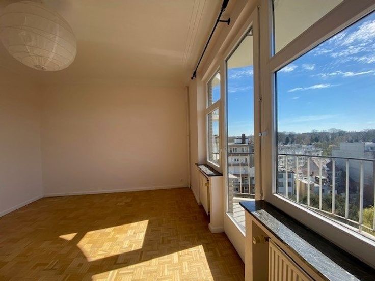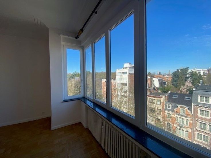 Sorry er is geen nederlandse vertaling beschikbaar. A deux pas du bois de la Cambre, de l'avenue Franklin Roosevelt et de l'ULB (sur 1000 Bruxelles), très beau et lumineux l appartement avec vue imprenable, situé au 6ème étage dans un immeuble des années 50 - +/- 147m2 brut selon PEB - il se compose comme suit: hall d'entrée, wc, lave-mains, vestiaire - lumineux living et salle à manger totalisant +/- 40m2 (parquet) - spacieuse cuisine super équipée (grand frigo & freezer, taque vitrocéramique, four électrique, hotte, lave-vaisselle, lave-linge et séchoir) donnant sur un balcon - hall de nuit desservant 2 chambres de +/- 15 et 19 m2 dont 1 avec une terrasse arrière surplombant l'îlot - salle de bain moderne (bain, douche séparée, double la .