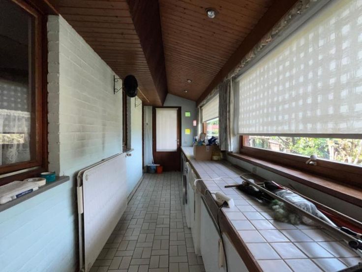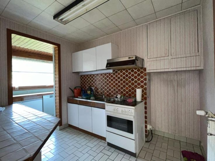 Charmante maison d'habitation 4 façades de plain pied avec garage, car-port, terrasse, dépendances et beau jardin arboré. Rez-de-chaussée: séjour avec feu ouvert 35,61 m2 ; salon/salle à manger avec accès terrasse 24,57 m2 ; véranda 11,63 m2 ; cuisine équipée 6,94 m2 ; arrière cuisine/buanderie avec accès extérieur 14,42 m2 ; hall avec placards et accès extérieur 6,24 m2 ; hall de nuit 3,76 m2 ; WC avec lave-mains 1,12 m2 ; dressing 3,87 m2 ; salle de bains 5,30 m2 ; 2 chambres 12,24 m2 et 7,18 m2 et garage 17,98 m2 . Etage : Combles non aménageables accessible par trappe. Sous-sol : cave/chaufferie + vides-ventilés. Extérieur: passage carrossable; car-port; cour couverte (accès PMR) ; terrasse de 15 m2 + auvent électrique ; terrasse ; abri épendances et beau jardin arboré. Confort : Electricité bi-horaire ; châssis bois simple et double vitrage ; chauffage central au gaz de ville (chaudière murale Vaillant neuve) ; raccordement téléphone et télédistribution ; eau de ville et raccordement égouts. Situation : Situation calme et résidentielle, proche des axes autoroutiers, des écoles, des commerces et des transports en commun. Orientation jardin : Sud. Occupation: Libre d'occupation. Visites: Sur RDV avec Mr FRANCK au 0476/422.607
