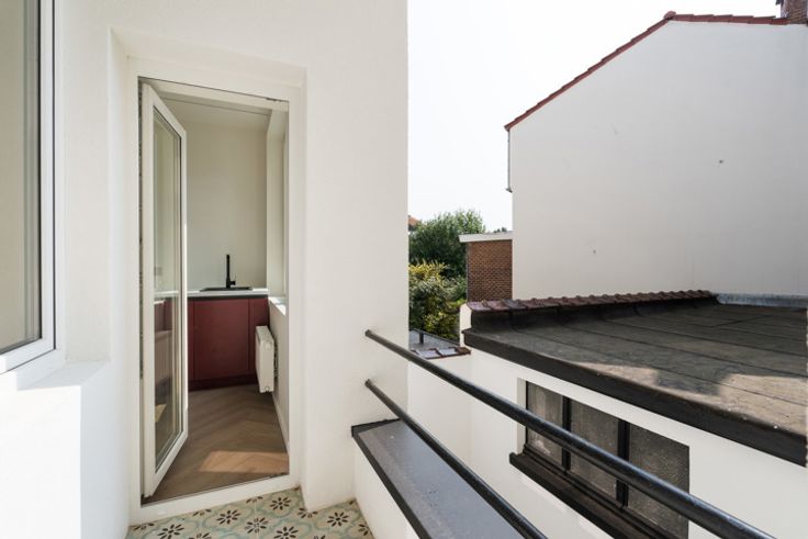 WOLUWE-SAINT-LAMBERT, in de wijk Georges-Henri vlakbij talrijke voorzieningen. Aantrekkelijk nieuw APPARTEMENT van 48m² (0bed/1sdd) met klein terras. Gelegen op de 1e verdieping van een klein condominium, bestaat uit: inkomhal, slaapkamer, douchekamer (douche, wastafel, wc), open ingerichte keuken, woonkamer, klein terras met berging, bijkeuken. Kelder in de kelder. Elektriciteit conform. EPB: C (118Kwh/m²/jaar). Ontdek het bij L&P!