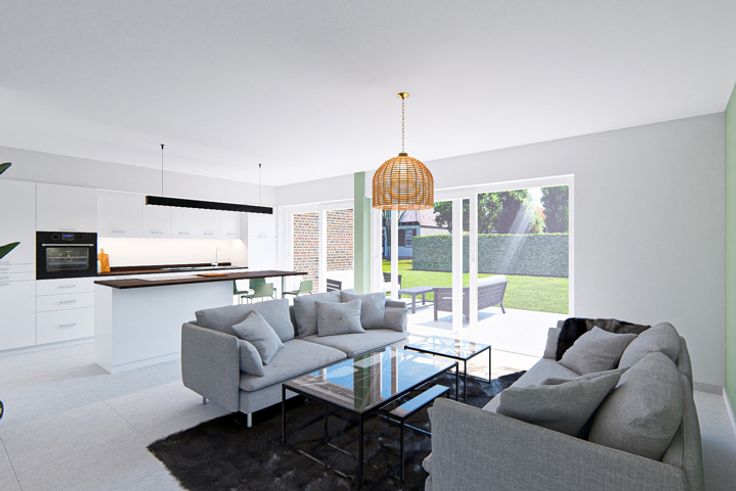 Caractéristiques techniques : châssis PVC double vitrage gris anthracite, porte de garage motorisée, escalier en hêtre, chauffage central au gaz, chaudière avec boiler séparé, radiateurs avec vannes thermostatiques, thermostat à horloge, VMC double flux, carrelage dans la pièce de vie et dans la salle de bain, faïences autour de la baignoire ainsi que dans la douche, parquet dans les chambres, carrelage anti-graisse pour le garage, jardin non engazonné, tout à l'égoût, puits de contrôle, citerne d’eau de pluie de 10.000 litres (pompe comprise), 7 panneaux solaires, accès au garage en pavés autobloquants, terrasse carrelée, clôture, portillon, bassin d'orage de +/- 1.655m² inclus dans la vente (entretien à charge de l'acquéreur), noue en fond de jardin