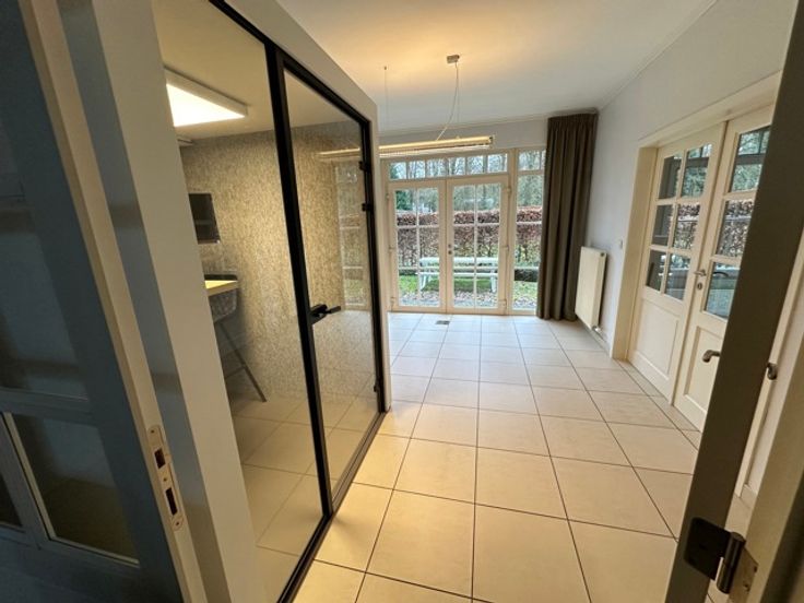 Deze landelijke villa beschikt over een kantoor op de gelijkvloerse verdieping. Het beschikt over een inkomhal met wachtruimte, een ruim secretariaat en 3 afzonderlijke kantoorruimtes. Buiten zijn er 7 parkeerplaatsen voorzien, wat bijdraagt aan het gemak voor medewerkers en bezoekers. Dit pand, bij uitstek geschikt voor vrije beroepen, is volledig gemeubileerd en beschikt over een aparte keuken met ingebouwde kasten. De strategische ligging langs de gewestweg (N117) zorgt voor een aanzienlijke passage, waardoor het pand niet alleen functioneel is maar ook een goede zichtbaarheid geniet.