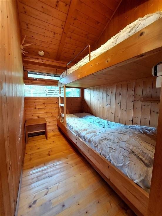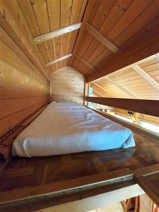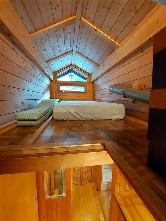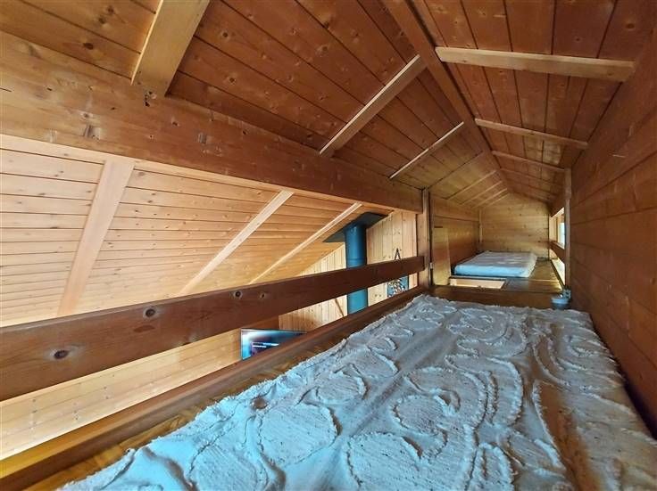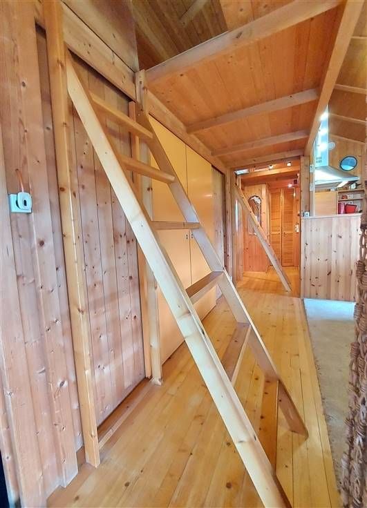 Mezzanine (+/- 1,5m hoog): slaapruimte 1 éénpersoonsmatras, slaapruimte 2 éénpersoonsmatrassen.