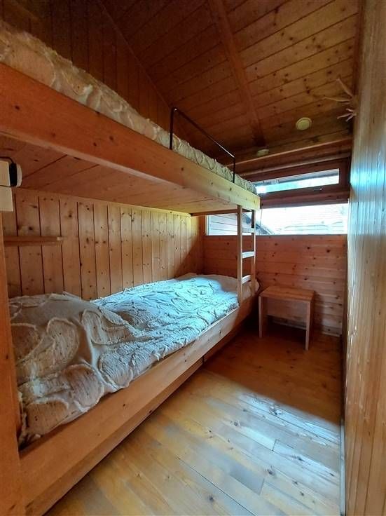 Bevat: gelijkvloers: living met gezellige zit en tv salon, Speksteen beklede haardkachel, open keuken. Drie slaapkamers voor 2 personen (1 dubbel bed en 2 stapelbedden) ingemaakte kast, badkamer, douche & WC. Overdekt omheind terras. Gerieflijke garage.