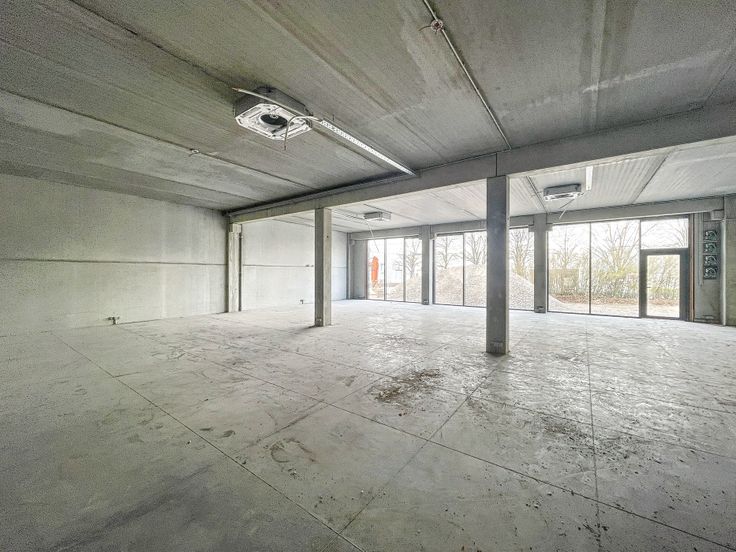 Aansluitend op het gelijkvloers situeert zich de lichtrijke showroom van 212m² voorzien van grote glaspartijen met inkomdeur.