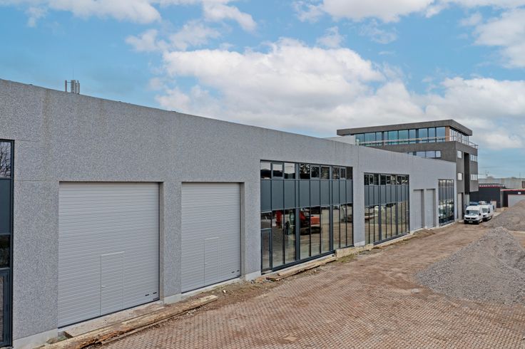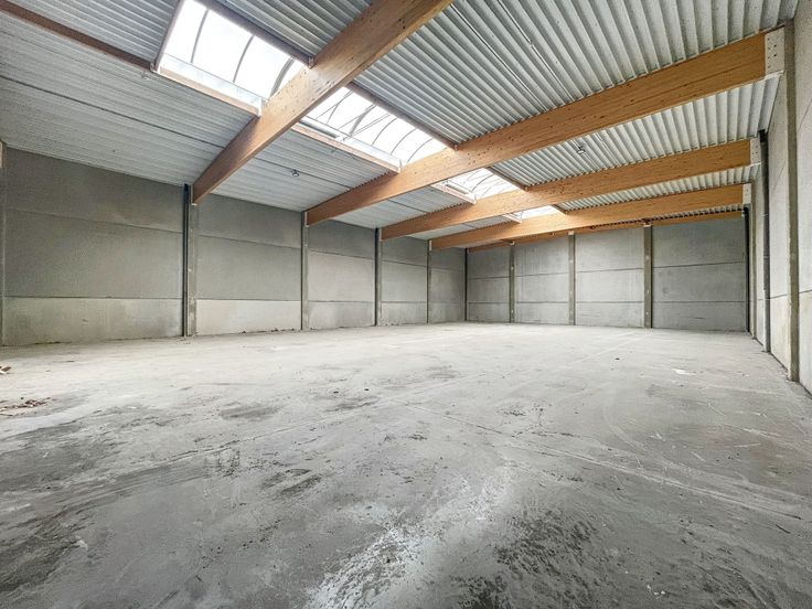 De loods heeft een vrije hoogte van 6,5m en is voorzien van een sectionale poort met een geïntegreerde loopdeur, lichtstraat en een polybetonvloer.