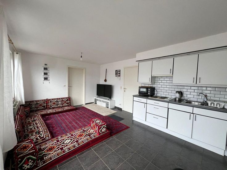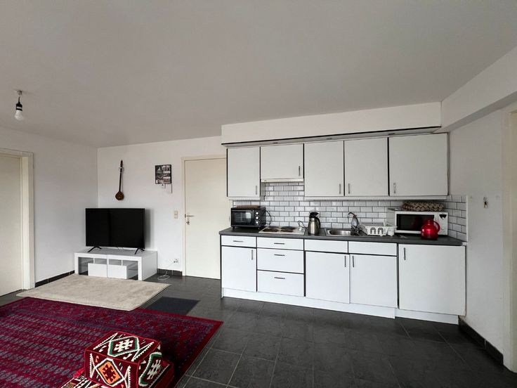 We betreden het appartement en komen terecht in de woonkamer, deze is opgedeeld in zithoek, eethoek en open keuken. De keuken is eenvoudig uitgerust en beschikt over voldoende opbergruimte. Het appartement beschikt verder nog over 1 ruime slaapkamer en badkamer met ligbad, wastafel en voorziening voor een wasmachine.