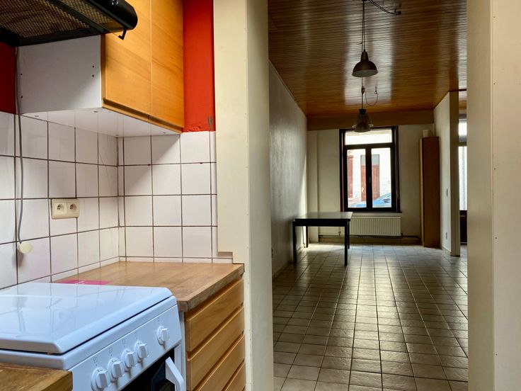Op het gelijkvloers is er een leefruimte met keuken,