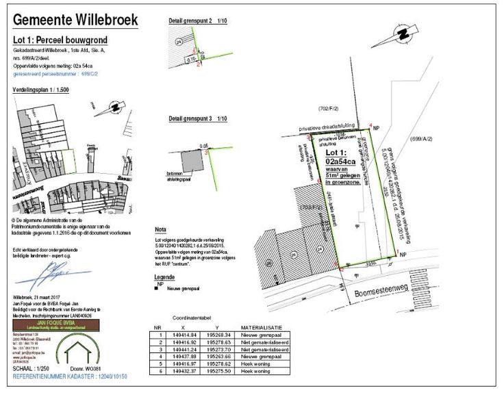 Dit pand wordt op internet verkocht van 05/11/2024 tot 13/11/2024. Bouwgrond gelegen te Willebroek, Boomsesteenweg (naast huisnummer 24) nabij centrum Willebroek met alle mogelijke voorzieningen. Met oppervlakte van 254m², een breedte van 10,5 meter en een diepte van ongeveer 24 meter Bijgevolg heeft deze grond de ideale bouwmogelijkheid. De bouwgrond grenst aan het naastgelegen park zodat deze omgeven is door groen, parking- en speelmogelijkheden P score: D