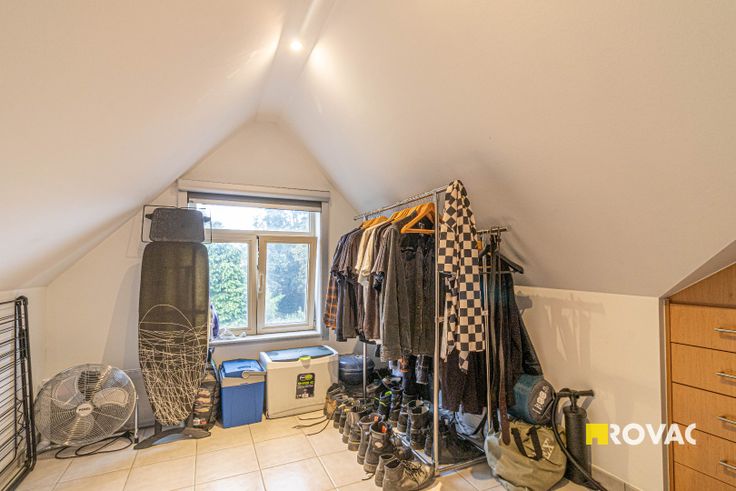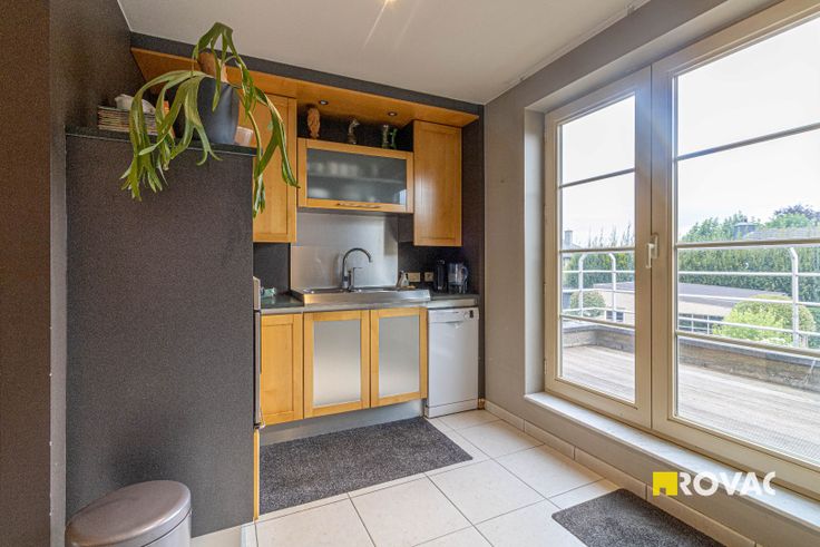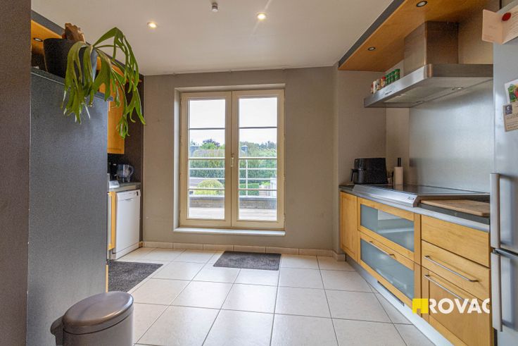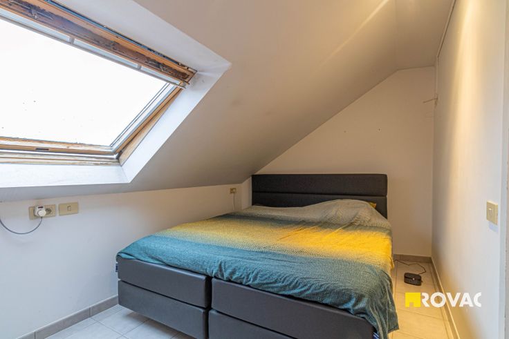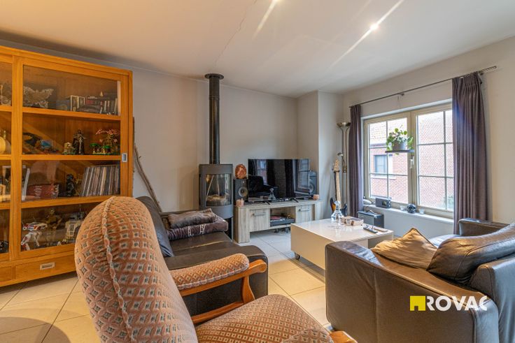 Centraal gelegen bel-étage betaande uit inkomhal met toilet, bergruimte, ruime garage met geautomatiseerde poort. Op verdieping: ruime living met gezellige gaskachel, open en volledig ingerichte keuken, berging/toilet en aanpalend terras. Op 2e verdieping: 2 slaapkamers en badkamer met wastafel en douche. CV op aardgas. EPC index: 190 kWh/m².