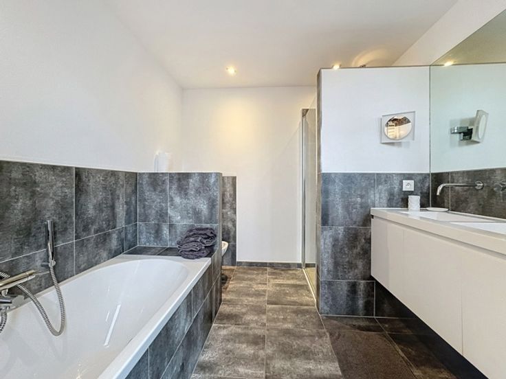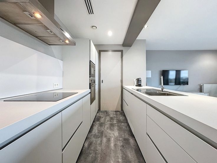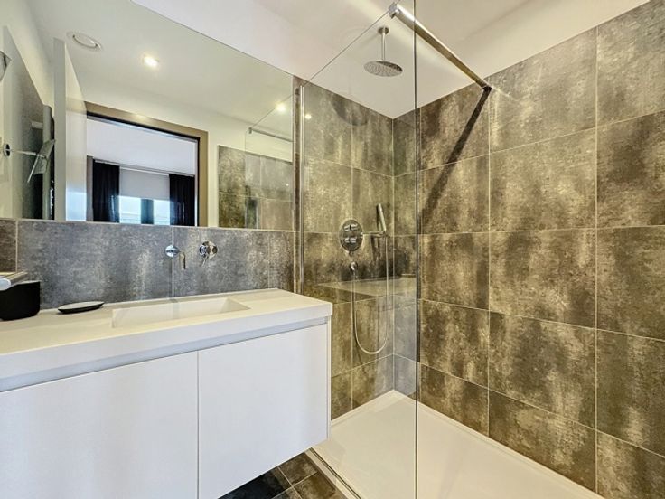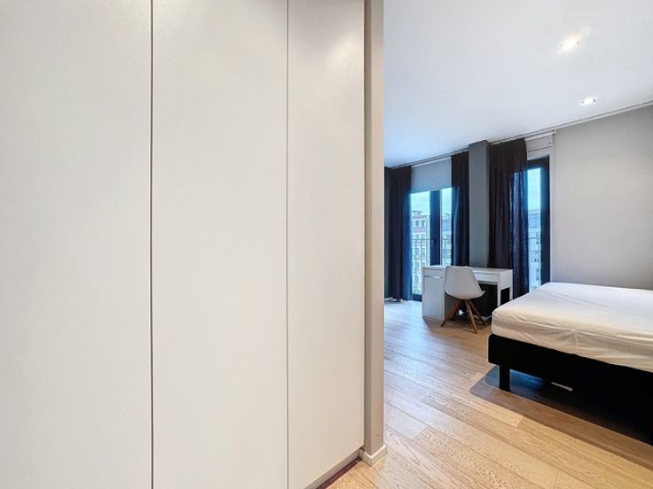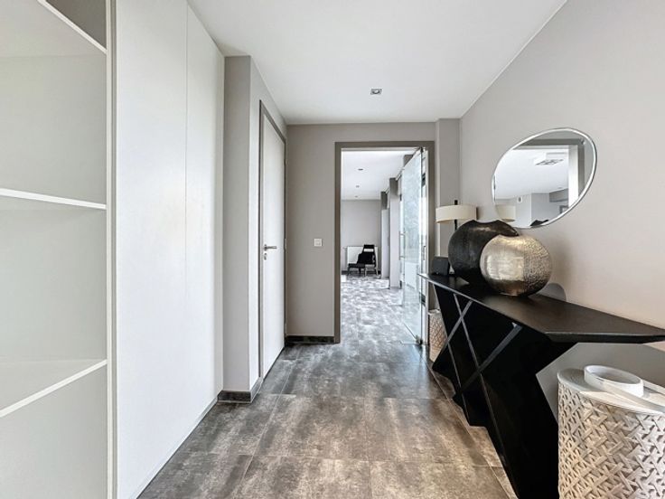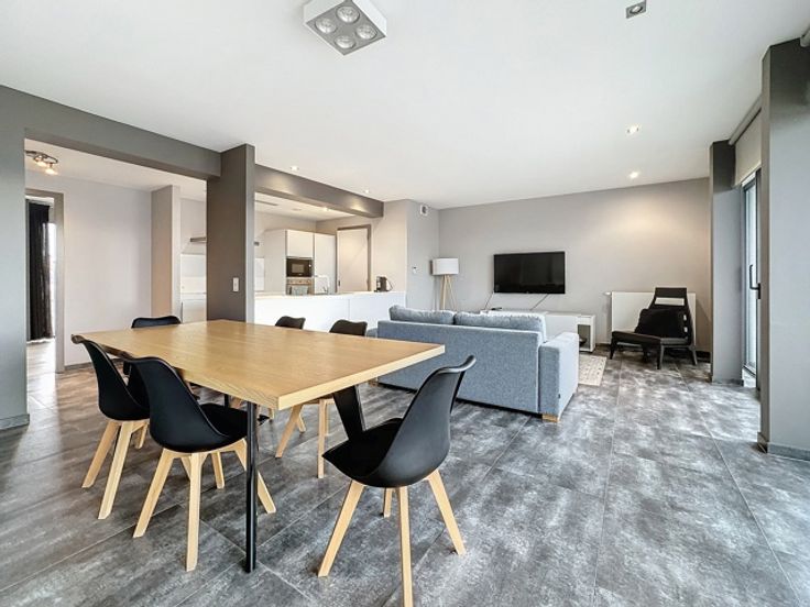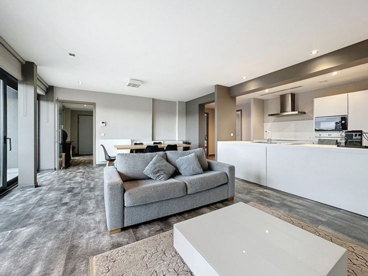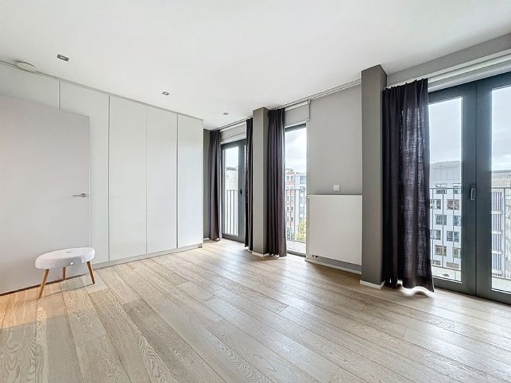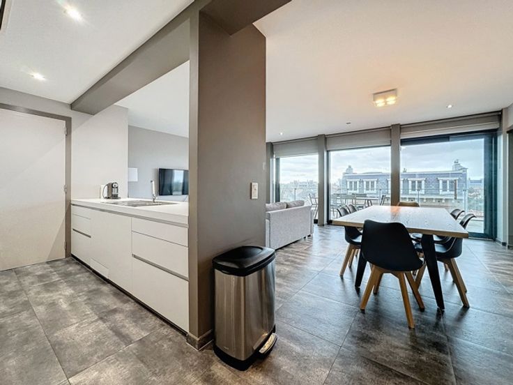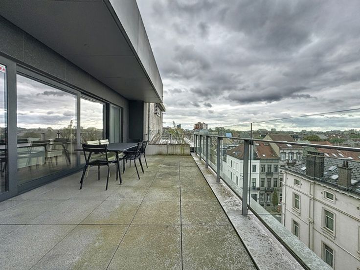 Gelegen in een luxe gebouw, dit eigentijdse penthouse op de 6e verdieping van +/- 116m² is gemeubileerd en bestaat uit: inkomhal met vestiaire, gastentoilet, woonkamer, open keuken (BULTHAUP), groot terras, nachthal, hoofdslaapkamer met badkamer en dressing, tweede slaapkamer met douchekamer, uitgeruste wasruimte. Elke slaapkamer heeft ook een eigen terras. Internet/TV inbegrepen in de huurprijs Comfortabele kenmerken: Talrijke kasten, kelder, fiets- en kinderwagenruimte, vuilnisbakruimte, conciërge in het gebouw, parkeerplaats extra. Bedrijfs lease OK. Virtueel bezoek: http://www.v360.immo/alva/v360/016/