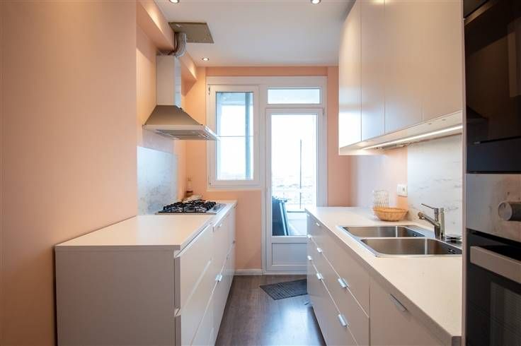 2020 ANTWERPEN | INSTAPKLAAR APPARTEMENT MET TWEE SLAAPKAMERS, TERRASJE EN AUTOSTAANPLAATS | GELEGEN OP DE NEGENDE VERDIEPING VAN GEBOUW MET LIFT | EPC B | Indeling als volgt : inkomhal op tegel met bergkasten - leefruimte op laminaat met mooi panoramisch zicht - geïnstalleerde keuken - ruime berging mat aansluiting wasmachine - terrasje - moderne badkamer met inloopdouche en lavabomeubel en toilet - 2 slaapkamers op laminaat - privatieve kelder - autostaanplaats in ondergrondse parkeergarage. Elektrische installatie conform het AREI. Gemeenschappelijke fietsenstalling. De gemeenschappelijke kosten bedragen ca. 250 EUR/maand (water, provisie verwarming, minuterie, syndicus, onderhoud, conciërge, lift, blokpolis, afvalsortering en spaarfonds).