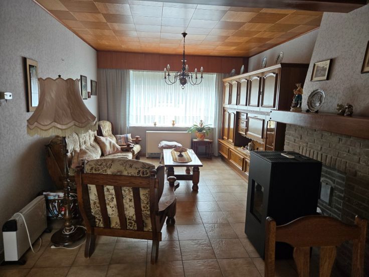 In deze charmante woning wordt u onthaald in een landelijke inkomhal. Deze biedt toegang tot de aangename leefruimte waar u heerlijk kan opwarmen aan de palletkachel. Verder is er een lichtrijke keuken aanwezig, voorzien van de nodige keukenapparaten. Via de keuken bereikt u de veranda en de goed onderhouden tuin. Het gelijkvloers beschikt tenslotte over een badkamer met douche en lavabo.