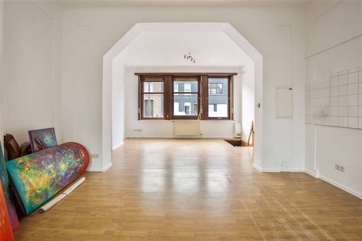 Zeer ruime woning met staanplaatsen en verschillende mogelijkheden. Indeling: -1: kelders. gelijkvloers: (82m²) momenteel ingericht als studio met eigen badkamer. 1ste verdiep: woonkamer met ingerichte keuken. Tussenverdiep: badkamer. 2de verdiep: 2 kamers waarvan 1 zeer ruime kamer met grote dressing. Deze woning wordt verhuurd sinds 2001 als 2 appartementen (termijn herstelvordering voorbij) en kan ingericht worden als woning met ruimte voor vrij beroep of als een ruime woning met mogelijks 6 kamers.