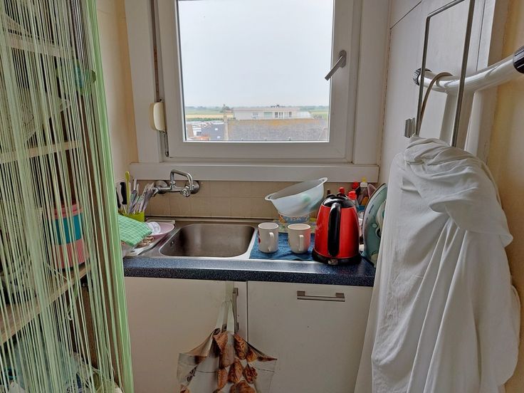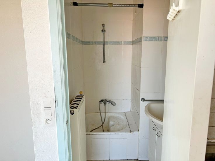Living, badkamer met douche en toilet, nieuw modern keukentje.