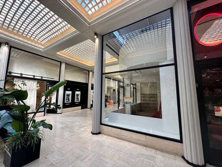 Uniek hoekpand te huur in de Nieuwe Gaanderij, een charmant shoppingcenter dat de Korte Gasthuisstraat verbindt met de Huidevettersstraat.