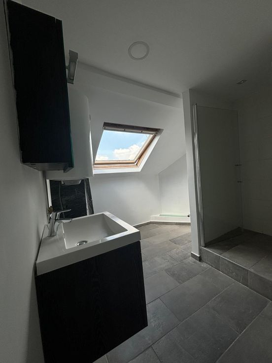 - Duplex avec une chambre, une seconde en mansarde, un salon, une cuisine équipée, salle de douche et toilette, pièce à vélo (à partager), une pièce de rangement à la cave. (Etat neuf)