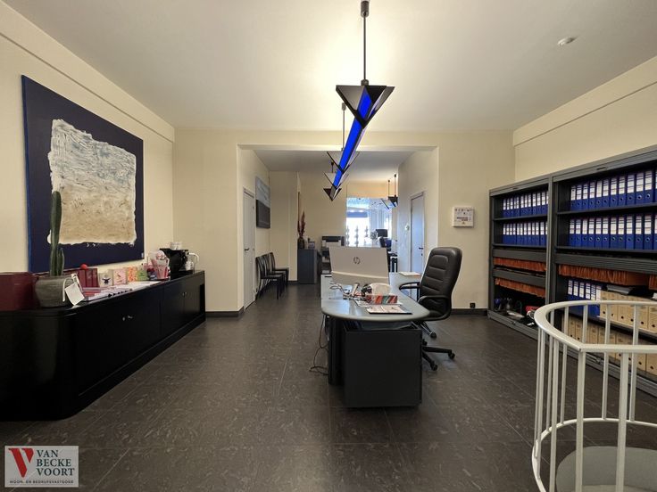 Actueel ingericht als: kantoorruimte - berging - apart toilet - rechtstreeks toegankelijke ruime kelder, ideaal als stockage.