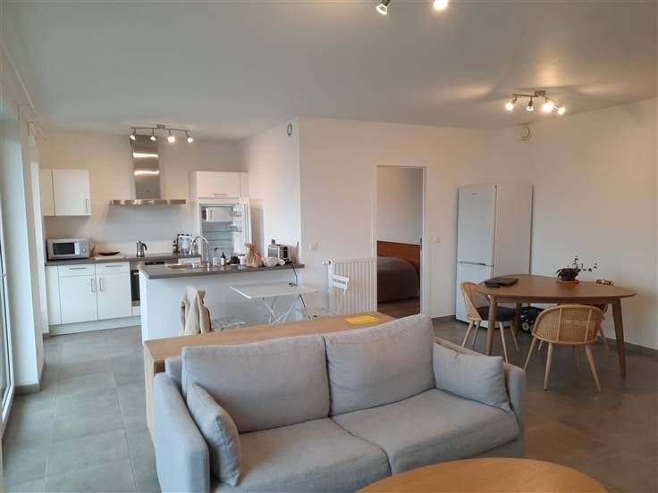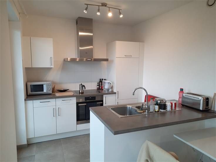Sorry er is geen nederlandse vertaling beschikbaar. Trop tard, il y a une option sur cet appartement...Namur Centre ville tout en étant au calme - ... Très lumineux appartement de ± 65 m² + terrasse de ± 5 m² situé au 4ème étage (avec ascenseur) d'une nouvelle résidence avec vue dégagée sur la ville, à proximité du nouveau Palais de Justice de Namur, à 5 minutes à pieds de la gare (bus, train), situé entièrement sur l'arrière (très calme). Composition : grand hall d'entrée, living de ± 33 m² avec baie vitrée donnant sur la terrasse et vue sur la Citadelle, cuisine américaine équipée (taques vitro., four, hotte, frigo avec freezer, emplacement lave-vaisselle, évier + meubles), 1 belle chambre de ± 13 m², salle de douche avec meuble lavabo et douche, buanderie et toilette avec lave-mains. Autres: Cave, local vélo, vidéophone, luminaires, châssis en PVC double vitrage, isolation maximalisée,...Possibilité de louer un emplacement de parking en sous-sol pour 90€ / mois supplémentaires. PEB A+ (35 kWh/m².an - EP Totale: 2.426 kWh/an - n° 20190311503421). Provision charges: 100 € (chauffage, eau chaude et communs). Possibilité de libre rapidement. Visite et renseignements: AD-IMMO 081/74.73.75