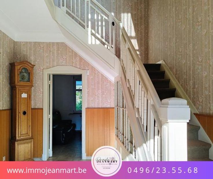 Infos techniques : PEB classe G - PEB No 20240325008821 - E. total 172911 kwh/an - E. spec 646 kwh/m².an, C.E non conforme, C.C au mazout (cuve 2000L), châssis bois simple vitrage + PVC DV, toiture en tuiles (non isolée), citerne d'eau de pluie. Situation : proche de la gare, arrêt de bus, écoles, centre-ville, magasins, sortie d'autoroute. Prix : 390.000,00 euros (sous réserve d'acceptation des propriétaires) - RC 1083 €. VISITES SUR RDV : mardi, samedi et dimanche. Dossier complet disponible auprès de l'agent immobilier 0496/235568 - www.immojeanmart.be.