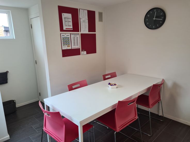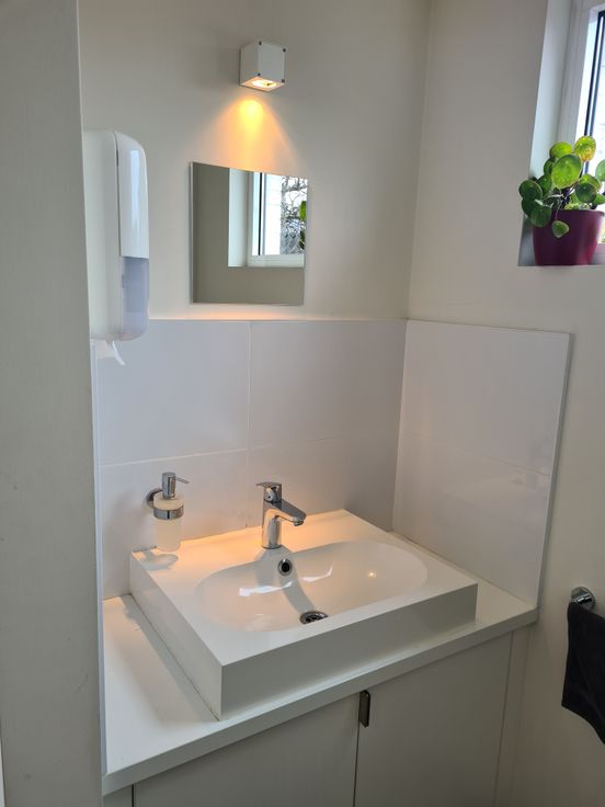 Er is een ruime parking achteraan het gebouw en vooraan in de straat.
