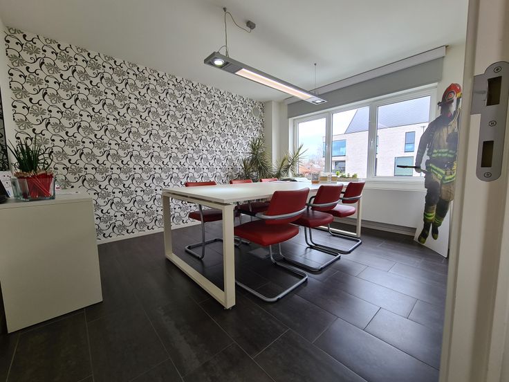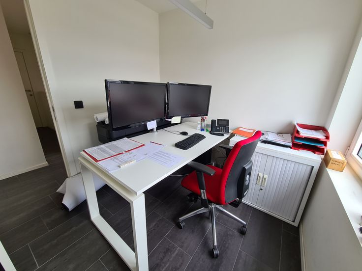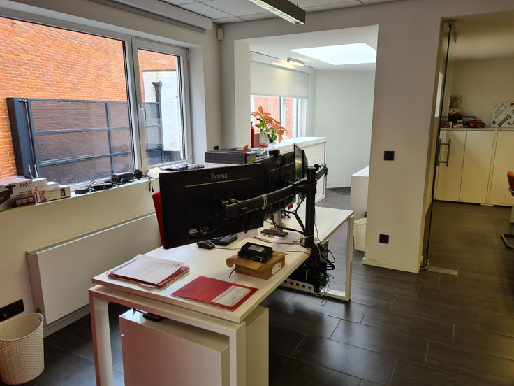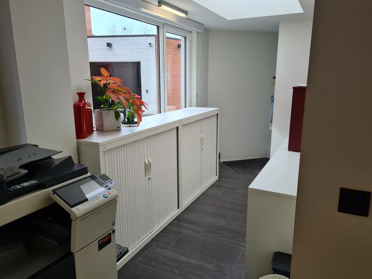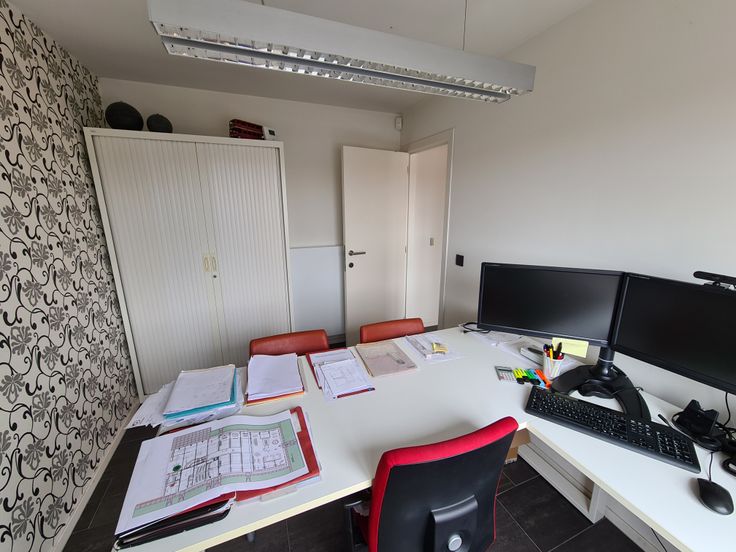 Een ruim en gunstig gelegen kantoorruimte of handelspand bestaande op het gelijkvloers uit een toonzaal met verschillende burelen of volledig als handelsruimte te gebruiken, keuken-eetruimte, afzonderlijk toilet. In de kelderverdieping bevindt zich een mooie ruimte voor archief of opslag. Op de eerste verdieping zijn er nog verschillende ruimtes die kunnen ingericht worden als bureel. Links naast het gebouw is er nog een magazijnruimte met een afzonderlijk leverlokaal. Het pand heeft diverse mogelijkheden. Het pand is voorzien van zonnepanelen wat een gunstig verbruik oplevert en tevens de mogelijkheid om uw wagenpark elektrisch op te laden.