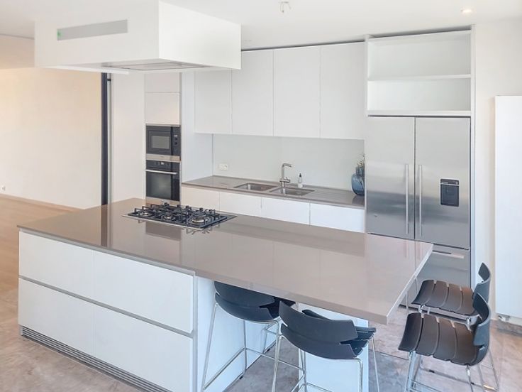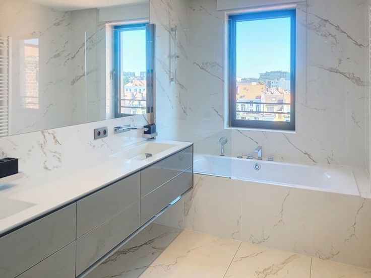 Dicht bij Châtelain/Brugmann, in een recent gebouw (2019), prachtig appartement van +/- 220 m² met groot terras aan de achterzijde bestaande uit: inkomhal, vestiaire, apart toilet, woonkamer (parketvloer) die toegang geeft tot het terras van 16 m² en tot de volledig uitgeruste open keuken BULTHAUP (Amerikaanse koelkast - oven - magnetron en bijkeuken); aan de achterzijde, nachthal die leidt naar 3 grote slaapkamers (14 - 13 -13 m²) met badkamer en douchekamer voor elke slaapkamer en een wasruimte met wasmachines. De woning heeft ook een alarmsysteem, privélift, gepantserde deur en videofoon. Fietsen- en afvalopslag in de kelder. Parkeerplaatsen kunnen gehuurd worden voor €175/stuk. rechtstreeks Beschikbaar.
