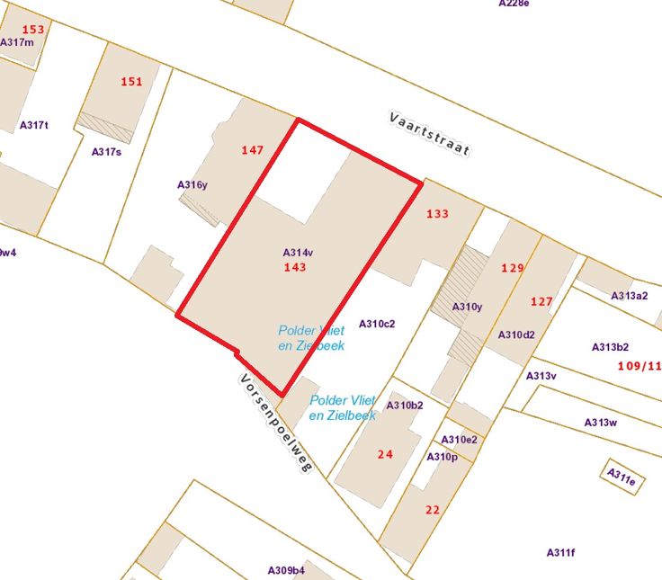Achteraan paalt de eigendom aan de Vorsenpoelweg.