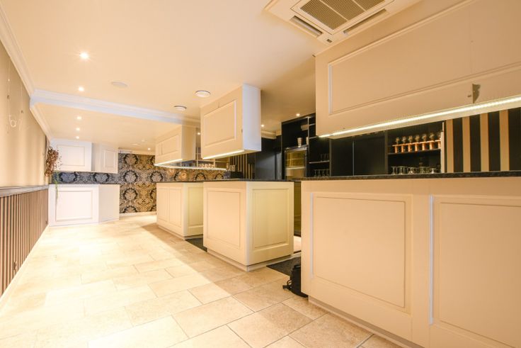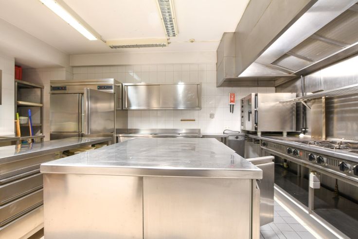 Aansluitend aan de bar bevindt zich een goed uitgeruste keuken met werkplaatsen, koelkasten, ovens, friteuses en meer. Op deze verdieping is er tevens een mindervalidentoilet aanwezig.