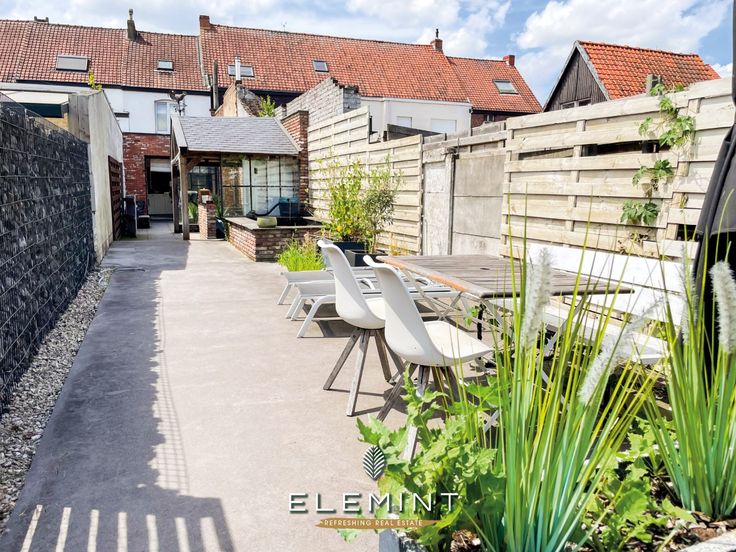 Prachtig rijwoning te Harelbeke, met een grote leefruimte, moderne badkamer vooraan, open keuken met eiland en alle toestellen, diepe tuin 567m² met uitweg achteraan en een grote houten garage.