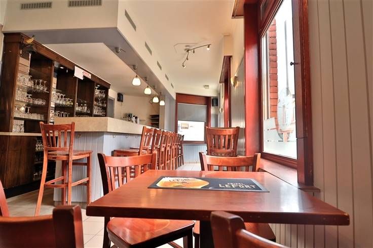 Dit ruim hoekpand was voor kort een druk beklant volkscafé. Nog steeds ingericht als café kunnen nieuwe uitbaters onmiddellijk aan de slag. Ook voor een andere invulling biedt dit pand op deze locatie tal van mogelijkheden. Een goede visibiliteit en vlot parkeren in de buurt zijn extra voordelen. Er is een keukenruimte met tweede uitgang op straat, een dubbel sanitairblok en een bergruimte. Het verdiep kreeg momenteel nog geen invulling, talrijke mogelijkheden kunnen zich aanbieden.