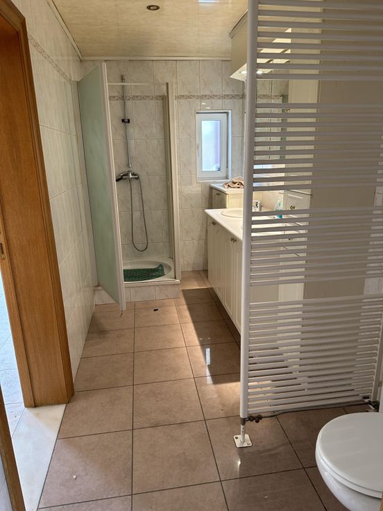Woonhuis bestaande uit twee RUIME woongelegenheden en dubbele garage. Indeling GELIJKVLOERS : Ruime living ( veel lichtinval ) met open keuken , pvc ramen dubbel glas ( deels met rolluiken ), 1 slaapkamer, badkamer, veranda en ruim zonnig terras. kadastraal inkomen : 617 €. EPC : 362 kWh/m²jaar = D. Indeling EERSTE EN TWEEDE VERDIEP : Ruime living ( veel lichtinval ), pvc ramen dubbel glas ( deels met rolluiken ), 3 slaapkamers , 2 badkamers, 2 wc's, dakterras ? kadastraal inkomen : 580 €. EPC : 557 kWh/m²jaar = F = Renovatieplicht. Vrij bij akte, asbestveilig, watertoets : P-score en G-score : B. Voor bijkomende inlichtingen en/of bezichtiging : 0475/92.66.55