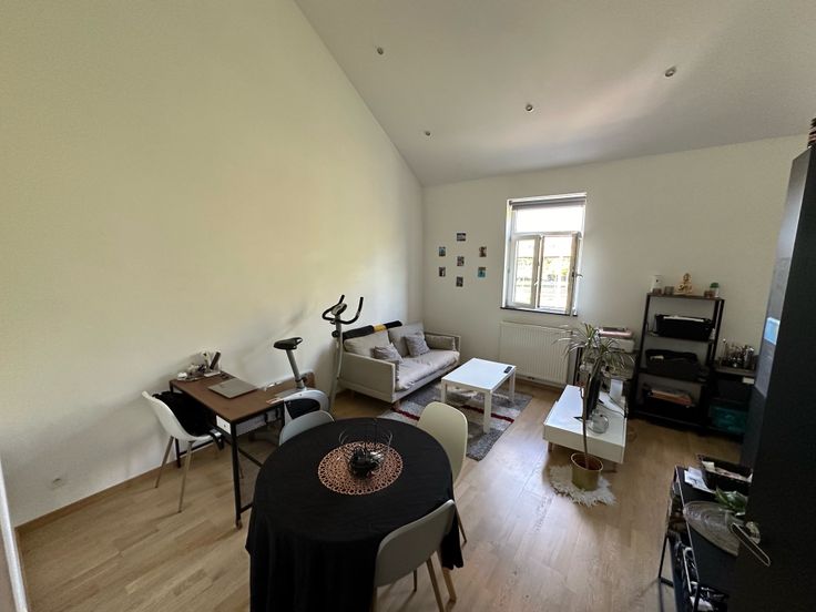 Appartement une chambre partiellement meublé comprenant un lit, une garde-robe, une table à dîner, un canapé, une armoire TV et une machine à laver. Situé au troisième étage, il dispose d'une pièce de vie avec cuisine tout équipée, une chambre et une salle-de-bain avec WC. Loyer : 685€ Charges communes : 25€ Eau, gaz et électricité : privatifs À moins de 10 minutes du centre-ville de Liège et à 10 minutes de la gare des Guillemins, cet appartement est proche de toutes commodités (transports en commun, commerces, écoles, etc.). Disponible à partir du 1er octobre.