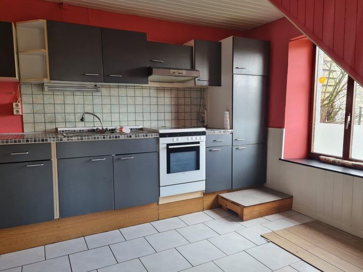 Gezellige woning met grote tuin, gelegen in het centrum van Bièvre, nabij de winkels, openbaar vervoer en andere voorzieningen, op een perceel van +- 6a 60ca. Samenstelling van de woonst (+- 105m² woonopp., +- 180m² totale opp.). Gelijkvloers : Inkomhal, salon, eetkamer, deels ingerichte keuken, badkamer (douche, lavabo, toilet). 1ste verdieping : Nachthal, 2 slaapkamers, bureau, zolder. 2de verdieping : Inrichtbare zolders (+-60m²). Kelders : Één kelder. Geasfalteerde koer vooraan de woning en grote tuin (OOST oriëntatie). Het perceel van +- 6a 60ca omvat eveneens een stuk bouwgrond. Bijkomende inlichtingen : Recent dak in natuurleien, houten ramen met enkele beglazing, elektriciteit met dubbel tarief (niet conform), aansluitingen telefoon en televisie … Verwarming te voorzien (reeds radiatoren aanwezig), mogelijkheid tot plaatsen kachel in de woonkamer. Gunstige ligging nabij de scholen en winkels (beenhouwer, bakkers, apotheker, superette, …) en op 2 km van een station alsook nabij toeristische trekpleisters als Bouillon, Vresse-sur-Semois, Rochehaut, Herbeumont, Daverdisse, … De naastgelegen woning (3 slaapkamers) is eveneens te koop met tuin en 2 garages op +- 4a 70ca. Mogelijkheid klein beschrijf - het KI kan herzien worden owv opsplitsing perceel. De bovenvermelde inlichtingen en oppervlakten zijn indicatief en niet bindend. De perceelsoppervlakte van +- 6a 60ca dient bevestigd te worden met een opsplitsingsplan door landmeter.