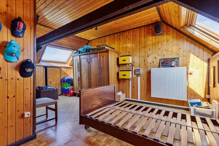 Woning met 3 slaapkamers, tuin en garage te Erembodegem. Deze strategisch gelegen woning ligt op wandelafstand van de dorpskern van Erembodegem, nabij het station, winkels, scholen, het openbaar vervoer en de E40. Via de inkomhal bereiken we de leefruimte die aansluiting met open keuken en de vernieuwde badkamer. Aansluitend hebben twee terrassen, waarvan 1 overdekt is, en een prachtige zonnetuin, die ligt in het verlengde van het terras. De eerste verdieping omvat 2 slaapkamers, de derde ruime slaapkamer bevindt zich op de zolderverdieping die te bereiken is met vaste trap en reeds volledig werd afgewerkt. De grote troef aan deze woning is de garage naast de woning, waardoor er zich nooit parkeerproblemen stellen. Voor meer info www.vandevondel.be. Wenst u graag een bezoek ter plaatse, contacteer 0489/200.248. EPC waarde: 317 kWh/m².