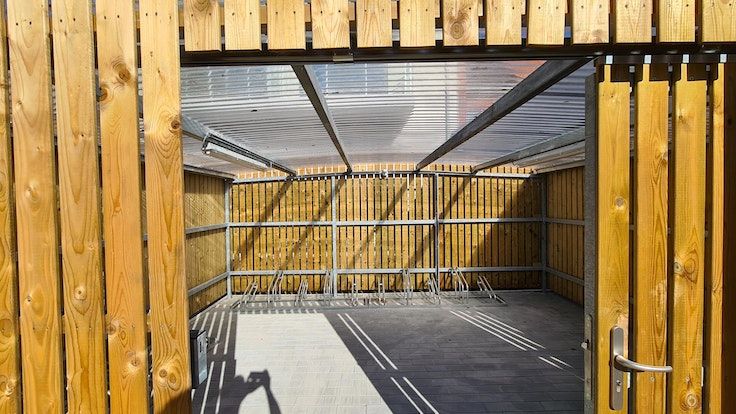 Fietsenberging & afgesloten garagebox in de gemeenschappelijke tuin.