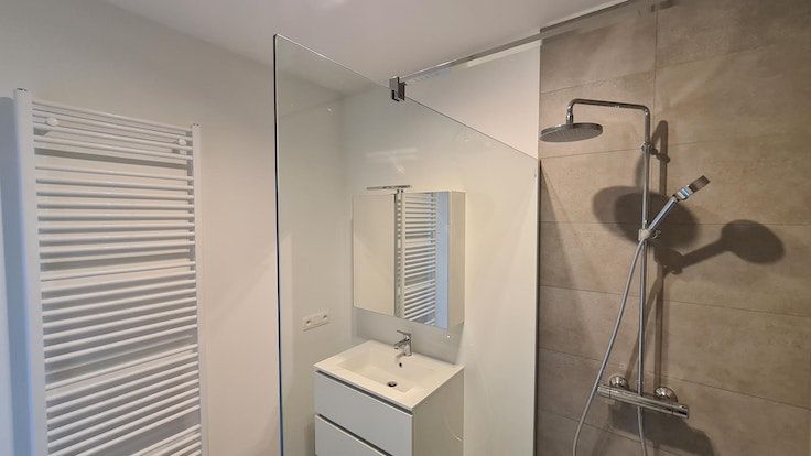 Indeling: Lichtrijke en ruime woonkamer met open keuken voorzien van vaatwas/koelkast/inductiekookplaats/combi-oven, aansluitend terras, badkamer met inloopdouche en wastafel in badkamermeubel, apart toilet, ruime berging, twee slaapkamers.