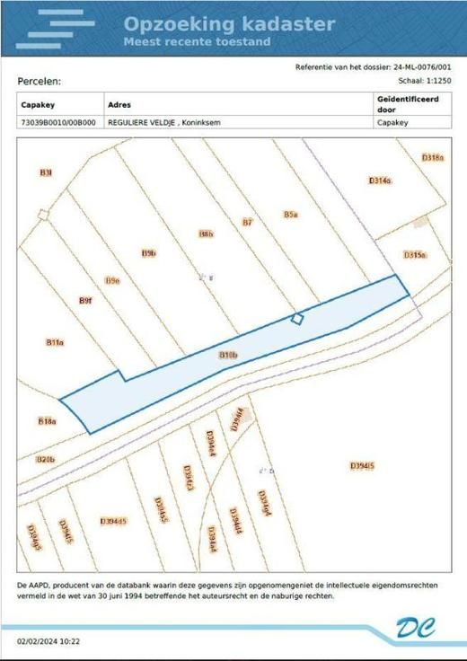Een perceel hooiland gelegen Reguliere Veldje, gekadastreerd volgens recent kadastraal uittreksel sectie B, nummer 0010BP0000, met een oppervlakte van zesendertig are drie centiare (36 a 3 ca). Niet-geïndexeerd kadastraal inkomen: tien euro (€ 10,00). EN Een landgebouw op en met grond en aanhorigheden gelegen Linderstraat 34 + nummer , gekadastreerd volgens recent kadastraal uittreksel sectie D, nummer 0315AP0001, met een oppervlakte van twaalf are twintig centiare (12 a 20 ca). Niet-geïndexeerd kadastraal inkomen: zeven euro (€ 7,00). De percelen zijn momenteel verhuurd, maar zullen vrij van gebruik zijn op het moment dat de notariële akte verleden zal worden. Onder het perceel is een NATO pijpleiding gelegen (zie plan bij bestanden in bijlage). Perceelscore: D Gebouwscore: A Vraagprijs: €25.000 P score: D