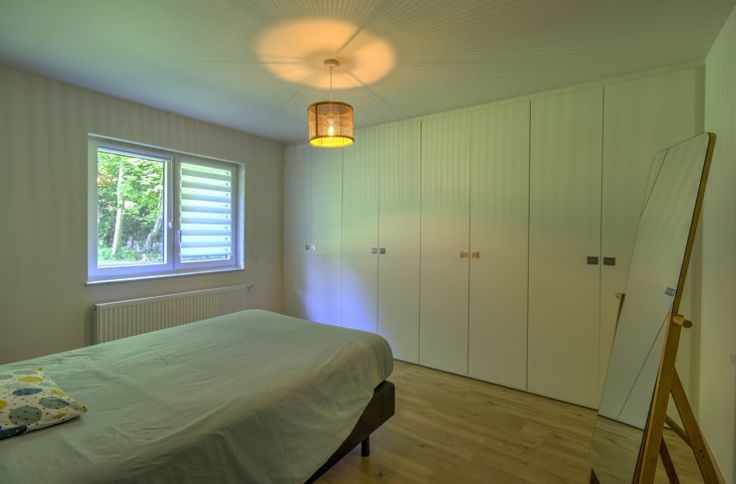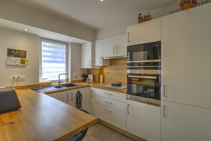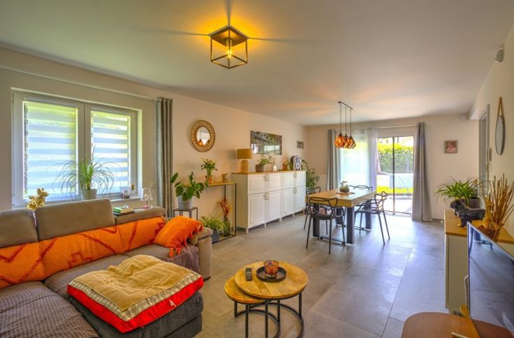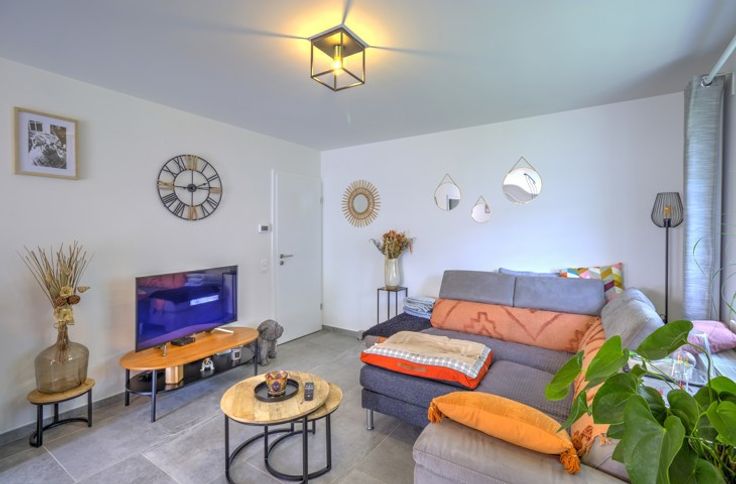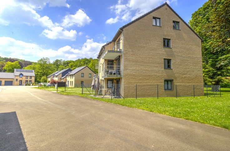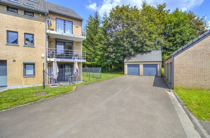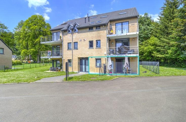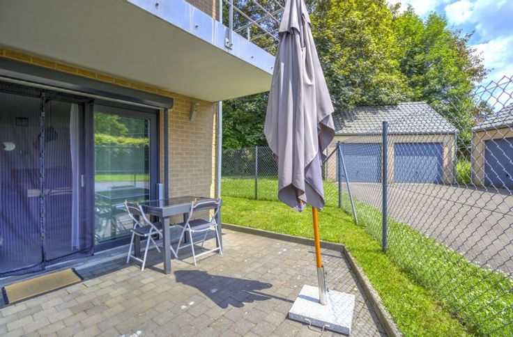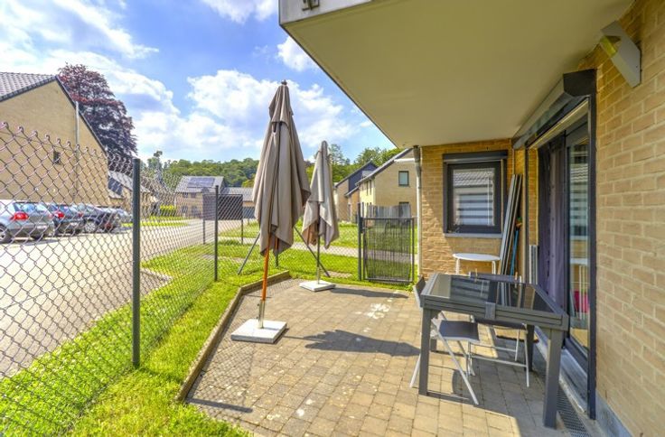 AU SEIN D'UN LOTISSEMENT, BEL APPARTEMENT DEUX CHAMBRES ENTIEREMENT RENOVE EN 2022 SITUE AU REZ-DE-CHAUSSEE AVEC TERRASSE, PETIT JARDIN ET GARAGE - Rez-de-chaussée: un garage de 16m², un hall d'entrée avec coin vestiaire de 3m², une buanderie avec placards de rangement de 3m², un séjour de 28m², une cuisine de 7m² parfaitement équipée (double évier, lave-vaisselle, frigo, congélateur, four, micro-ondes, taques, hotte), un hall de nuit, une chambre avec placards intégrés de 13m², une chambre de 10.5m², une salle de douche de 6.5m² (douche italienne, évier), une toilette indépendante avec évier - DIVERS: l'appartement a été rénové du sol au plafond en 2022 et présente un état impeccable, châssis PVC double vitrage avec volets électriques et moustiquaires dans le séjour et les chambres, chauffage central au gaz via chaudière à condensation avec thermostat d'ambiance, parlophone, alarme, compteur électrique intelligent, batardeaux anti-inondation, RCNI 844€, description non-contractuelle communiquée à titre informatif.