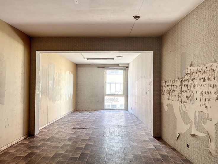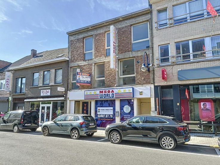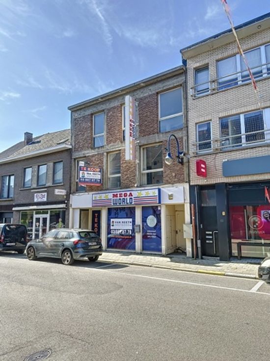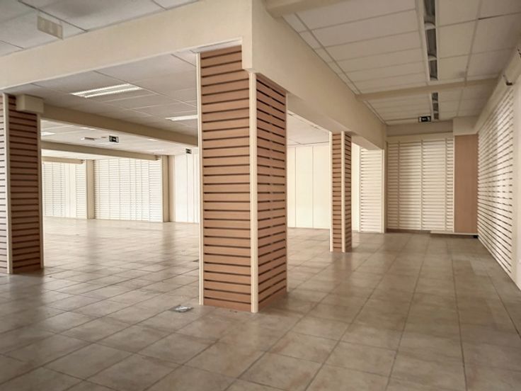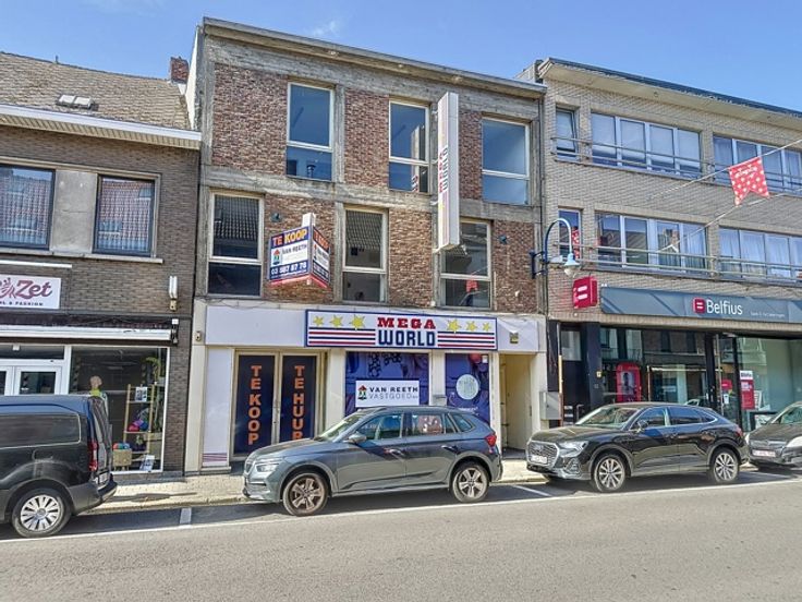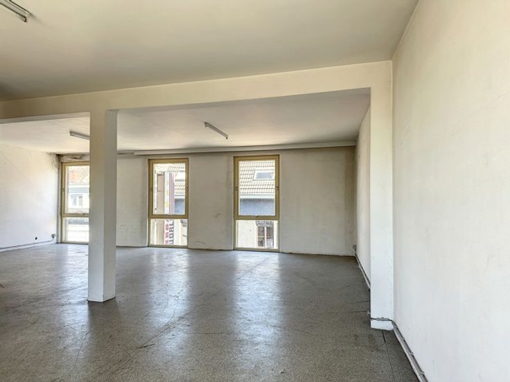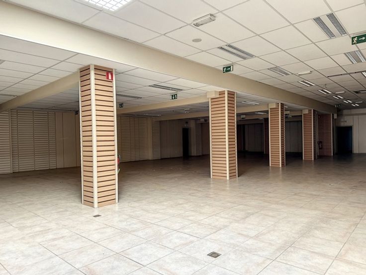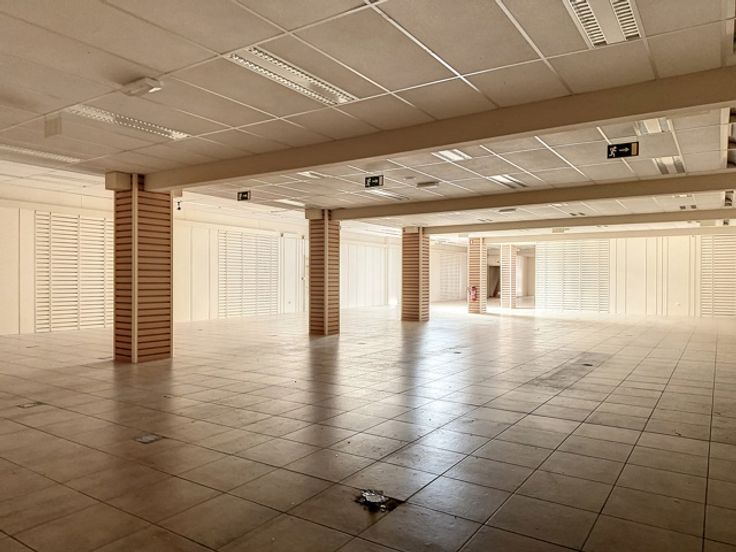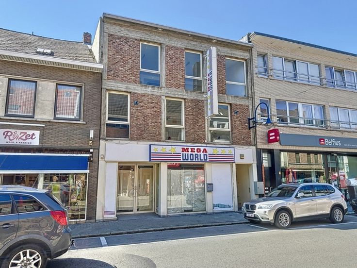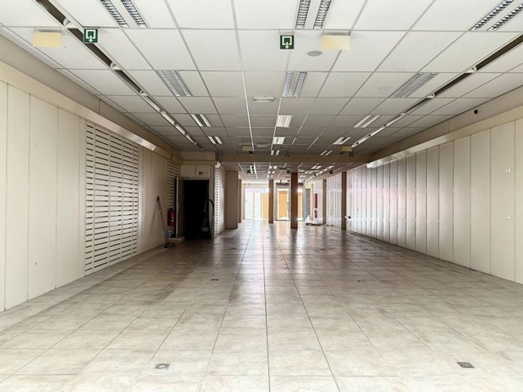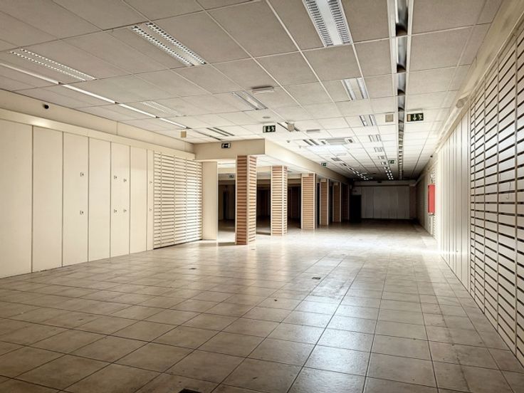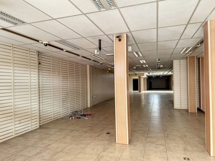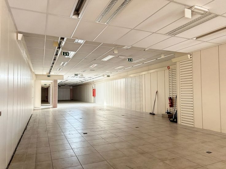 In het volle winkelcentrum tref je deze handelsruimte met twee (polyvalente) bovenliggende verdiepingen.