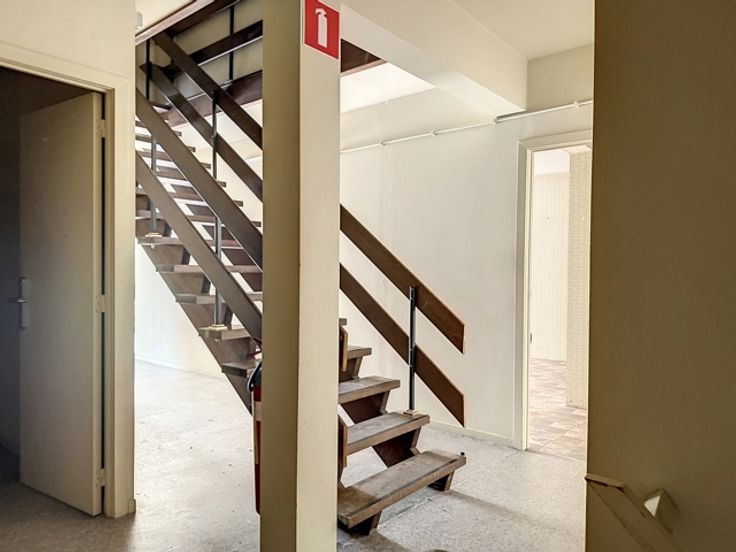 De twee bovenliggende verdiepingen zijn perfect te gebruiken als kantoren, refter, ...