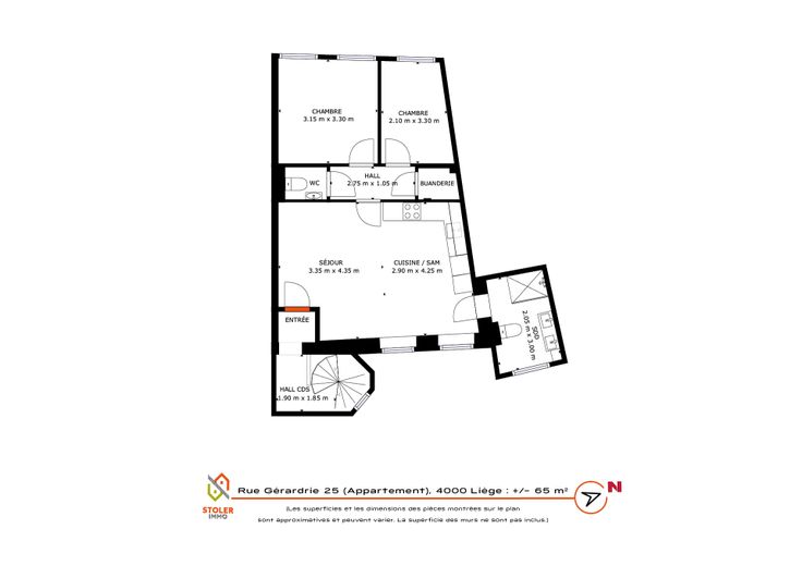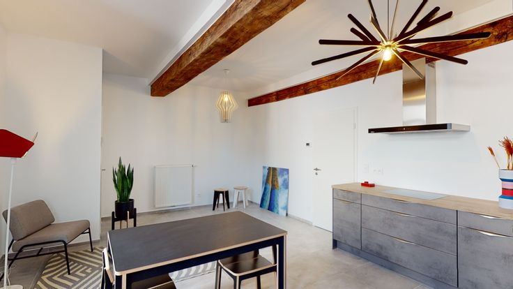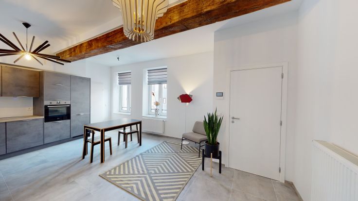 BIEN VENDU Composition: Situé au deuxième étage d'une copropriété entièrement rénovée de 5 logements sans ascenseur, magnifique appartement en parfait état composé d'un hall d'entrée, spacieux séjour avec cuisine ouverte entièrement équipée, deux chambres, une salle de bain avec douche, buanderie et WC séparé. Particularité: Excellente situation, centre-ville de Liège, quartier en plein expansion, développement des nouveaux projets Noshaq (Fiacre, ...) et proche de toutes commodités (commerces, écoles, bus, gare accessibles à pied). Rénovation de qualité, double vitrage, nouvelles installations de chauffage et électrique (conformes), système VMC, vidéophonie, énergies séparées. Très bon PEB de classe B.