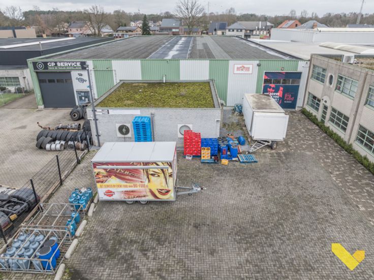 Deze industriehal van 1.304 m² is gelegen naast de E313 in Ham.