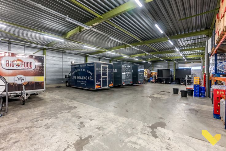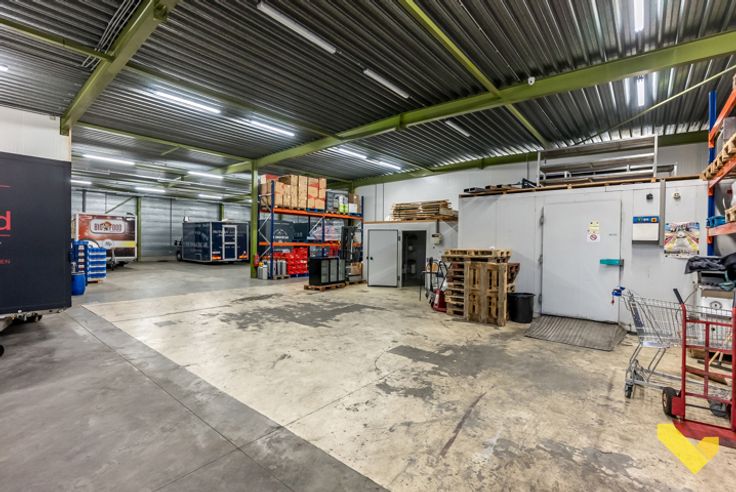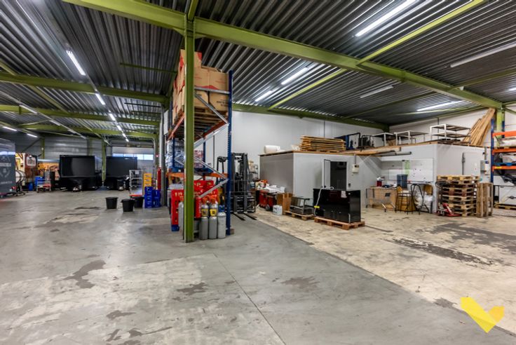 Naastliggende industriehal ( 250 m²) heeft een keuken en 2 kantoorruimtes, deze is apart verhuurd, maar is ook in de prijs inbegrepen.