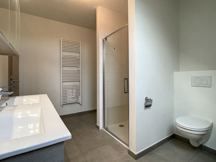 LOYER : 950€ + CHARGES : 50€. Appartement neuf, situé à proximité immédiate des commerces, des transports en commun, du centre de Florennes. Il se compose d'un hall d'entrée, d'une salle de douches (avec double vasque et rangements), d'un vaste séjour ouvert sur la cuisine équipée (four, hotte, taques de cuisson, évier et lave-vaisselle) et de 2 chambres. Il est muni d’une terrasse et de 2 emplacements de parking (1 intérieur n°9 et 1 extérieur n°14). Il est agrémenté d'un vidéophone, d'un accès PMR, d'un ascenseur et d'un local poubelles au sous-sol. La résidence bénéficie d'un PEB "B" grâce à une isolation acoustique et thermique, aux châssis PVC double vitrage, au chauffage via pompe à chaleur réversible permettant de chauffer/refroidir (airco). Garantie locative de 2 mois de loyer. Disponible pour le 1er février 2024. Ces informations sont délivrées à titre informatif et non contractuel.