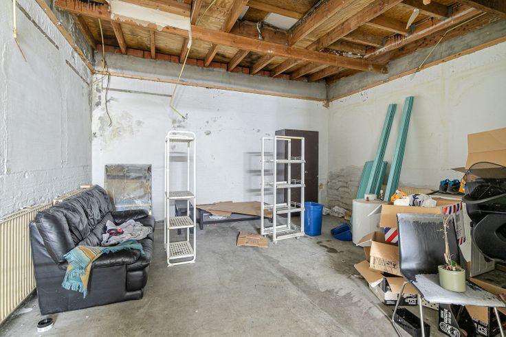 Aan de voorzijde situeert zich momenteel het haarsalon, goed voor een oppervlakte van zo’n 38 m². Achteraan is er nog een grote ruimte van zo’n 46 m² te vinden, wat veel mogelijkheden biedt als opslag, kantoor, … noem maar op! Verder zijn er ook nog een wc-ruimte met 2 aparte toiletten en een keuken (8 m²) met basisinrichting aanwezig.