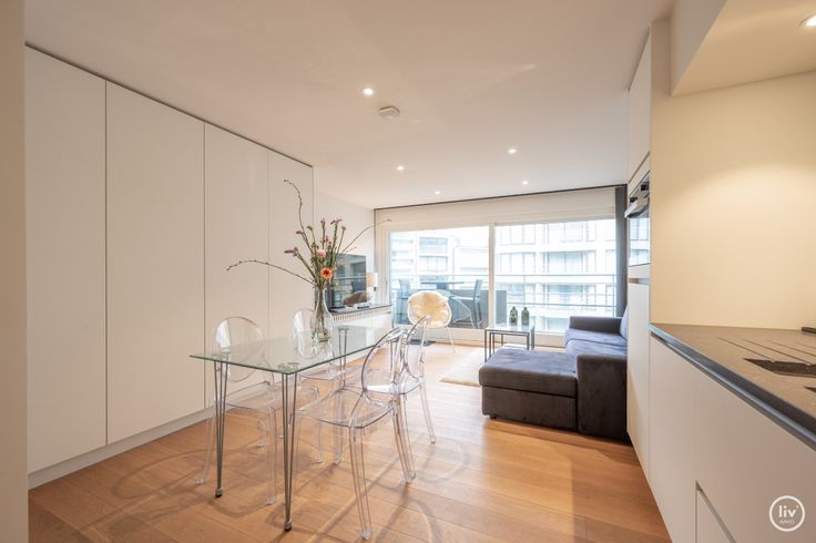 Gezellige, gerenoveerde studio met veel ingemaakte kasten en terras met zijdelings zeezicht vlakbij het Van bunnenplein te Knokke. Indeling: inkom met apart toilet, aangename leefruimte met veel ingemaakte kasten en zetel met bed. Open volledig geinstalleerde keuken. Terras langs voor met zijdelings zeezicht. Aparte douchekamer. Berging en fietsenberging in het gebouw.