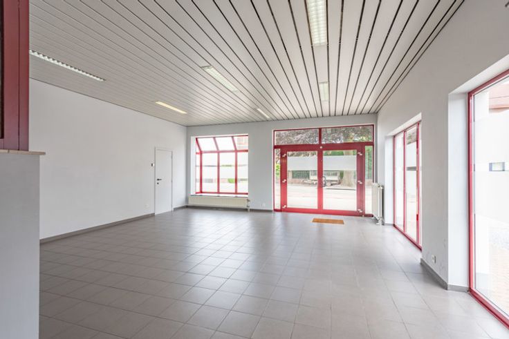 Gunstig gelegen werkplaats/garage in Riemst. Deze ruimte beschikt over een toonzaal met ruime etalagemogelijkheden aan een drukke doorgangsweg, wat zorgt voor veel passage en extra zichtbaarheid. Daarnaast is er een hoger gelegen kantoorruimte en een werkplaats/atelier. De werkplaats van maar liefst (280 m2) heeft een indrukwekkende hoogte van 4,4 meter en is voorzien van een sectionaalpoort aan de voorzijde. De werkplaats is volledig ingericht als garage, klaar voor gebruik. De voorzieningen omvatten een spuitcabine met afzuiginstallatie (29m2) , een verfruimte (8,23m2) , een berging, een fosse en een sanitaire ruimte. Als surplus is er via de dubbele poort aan de achterzijde toegang tot een extra open opslagruimte waar u voertuigen kunt plaatsen. Kortom, dit uitstekend gelegen handelspand is de ideale keuze voor een ondernemer. Beschikbaar in onderling overleg.