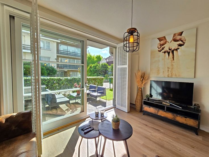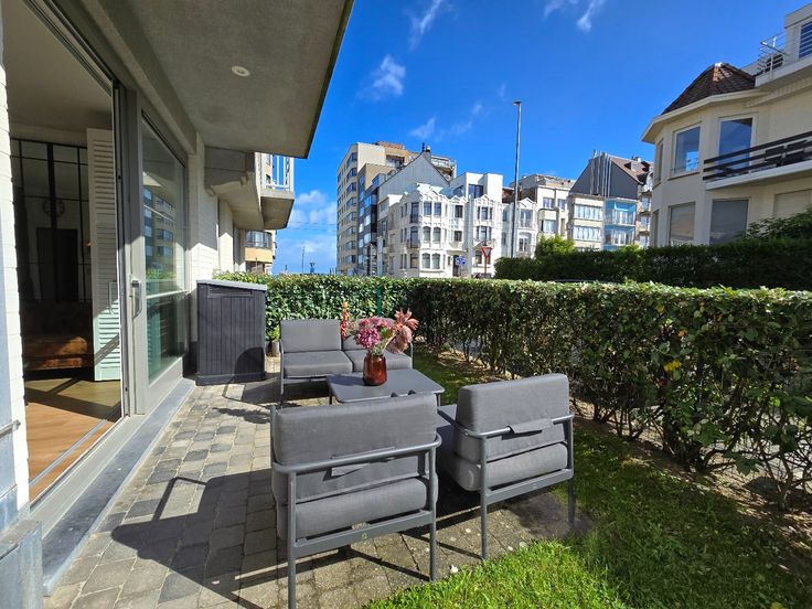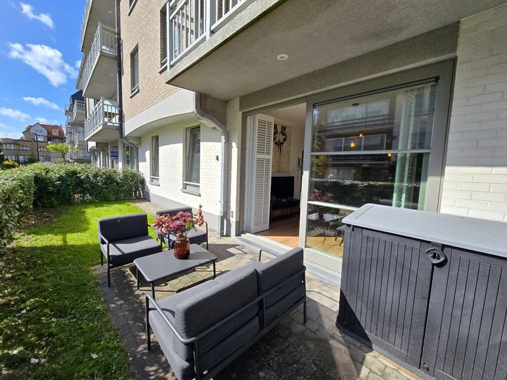 Knus gelijkvloers appartement met groot terras en afgesloten tuin. Het appartement bevindt zich in de standingvolle residentie Olympia (Bj '09) op enkele stappen van de Zeedijk en vlakbij het centrum van De Panne. Het appartement biedt u: inkomhal met wc en vestiaire / berging met wasmachine en droogkast, woonkamer met vernieuwde keuken, toegang tot het grote terras en tuin, 2 slaapkamers en badkamer met dubbele lavabo en douche. Bijhorende kelder in de ondergrondse en gemeenschappelijke fietsenstalling. Elektrische installatie conform en vernieuwde CV-ketel met wifi aansturing. Gemeubelde verkoop.
